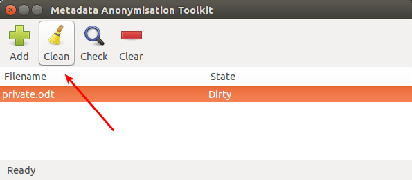 To clean up metadata from the file, click on Clean icon. MAT will automatically empty all private metadata fields from the file.